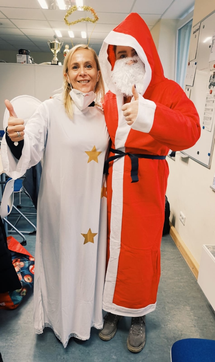 Die Kinder freuten sich riesig über frische Mandarinen und Schokolade, die die beiden Besucher fleißig verteilten. Ein Beweisfoto darf natürlich nicht fehlen. Wir sagen: Danke Nikolaus und Engelchen, dass ihr da wart!